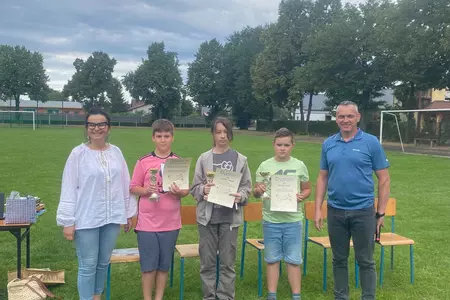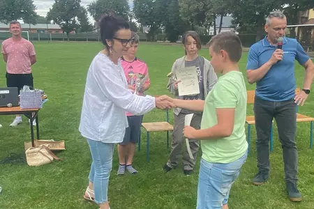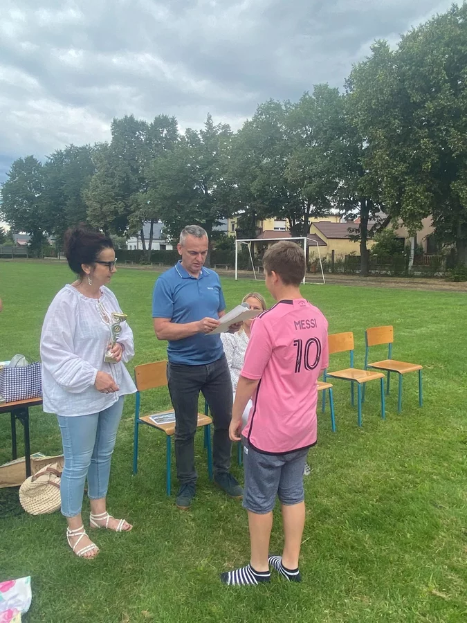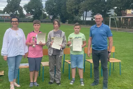 Tytuł MISTRZA ZADANIA TEKSTOWEGO, puchar i nagrodę otrzymał KRZYSZTOF ŚWIĘTKOWIAK z klasy IV, a wyróżnienie, dyplom i puchar otrzymali: GABRIELA FURMAN z klasy VI i MARCEL SZADY z klasy IV. Puchary po raz kolejny ufundowała rodzina pani Edyty Ordon-Grobeckiej, która przez wiele lat była nauczycielką matematyki w naszej szkole. Wszystkim uczestnikom, a szczególnie laureatom gratulujemy i bardzo dziękujemy mężowi pani Edyty - Arturowi Grobeckiemu oraz dzieciom Tatianie i Konradowi Grobeckim za puchary!