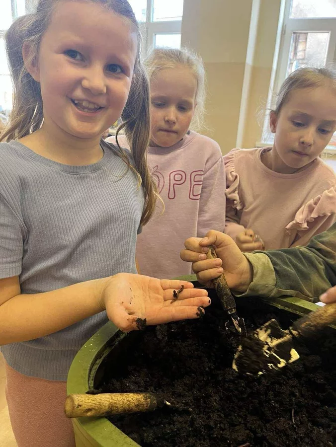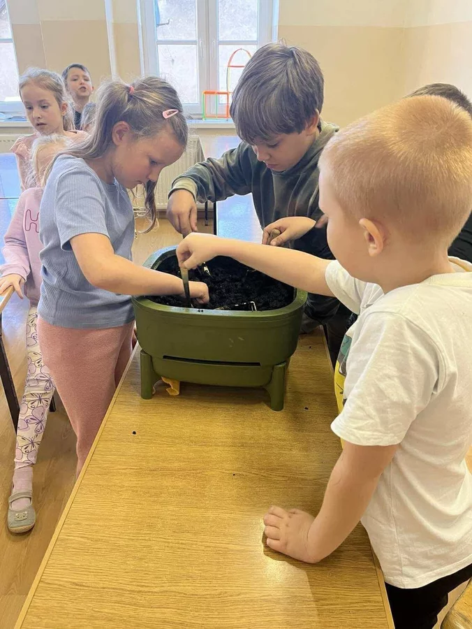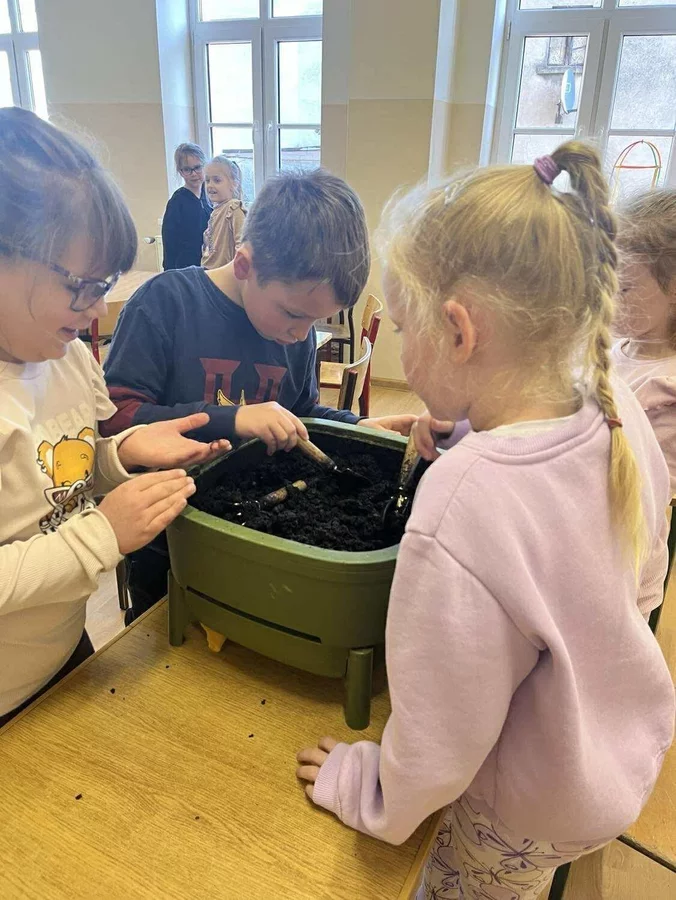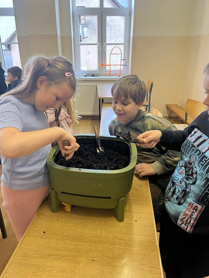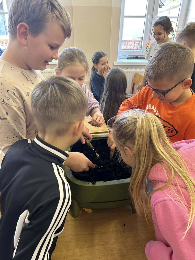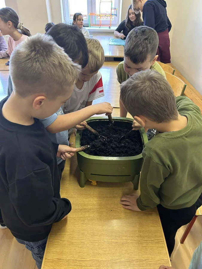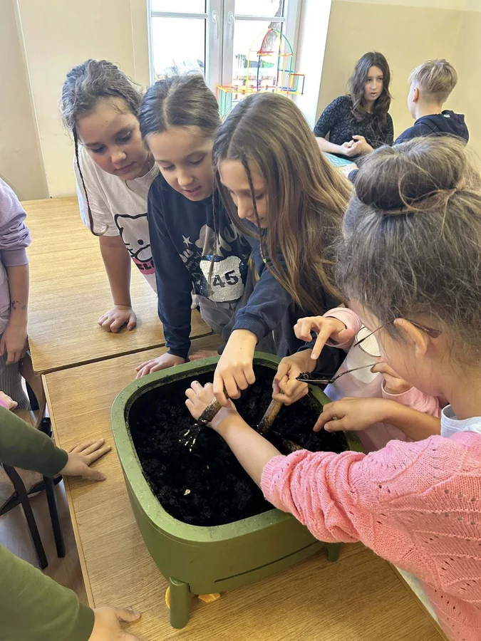 Podczas warsztatów uczniowie dowiedzieli się czym jest kompost, jakie odpady nadają się do kompostowania, a jakich należy unikać, oraz jakie warunki są niezbędne, aby proces przebiegał prawidłowo. Dzieci zobaczyły mały kompostownik, z którego mogły wydobyć dżdżownice, samodzielnie zasadziły kwiatek w doniczce oraz wspólnie rozwiązali tematyczną krzyżówkę.