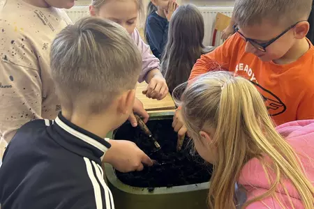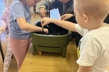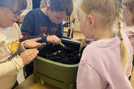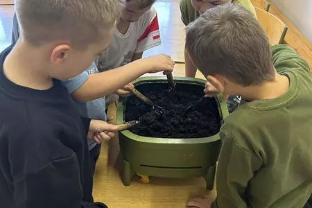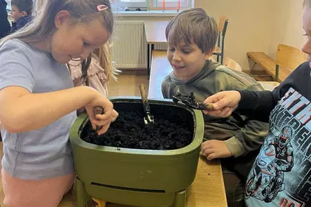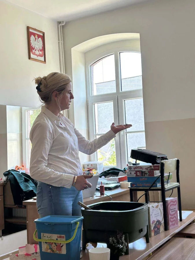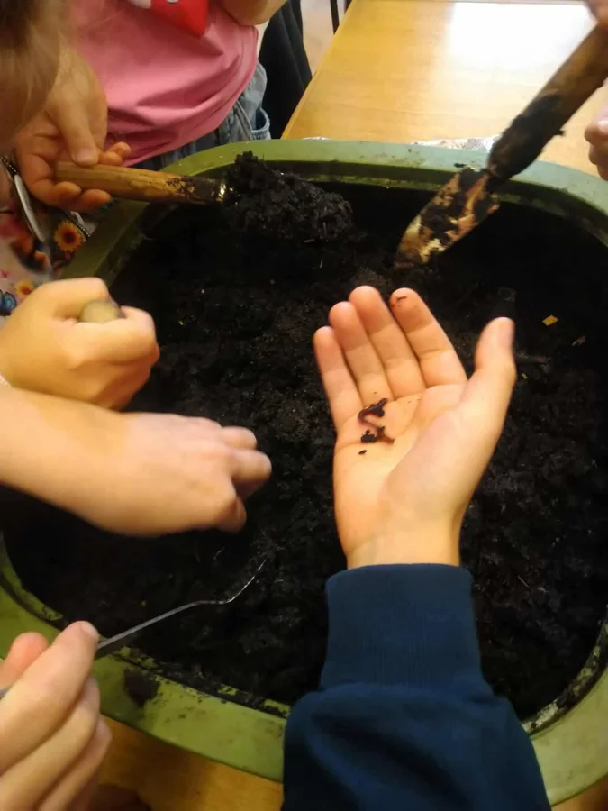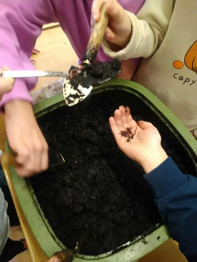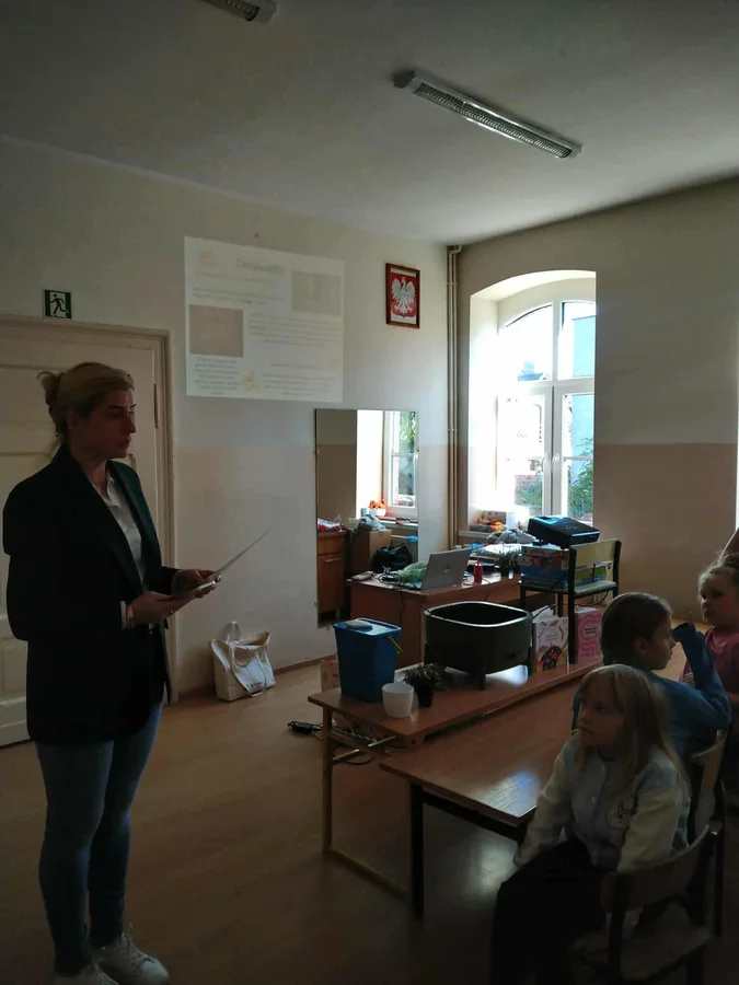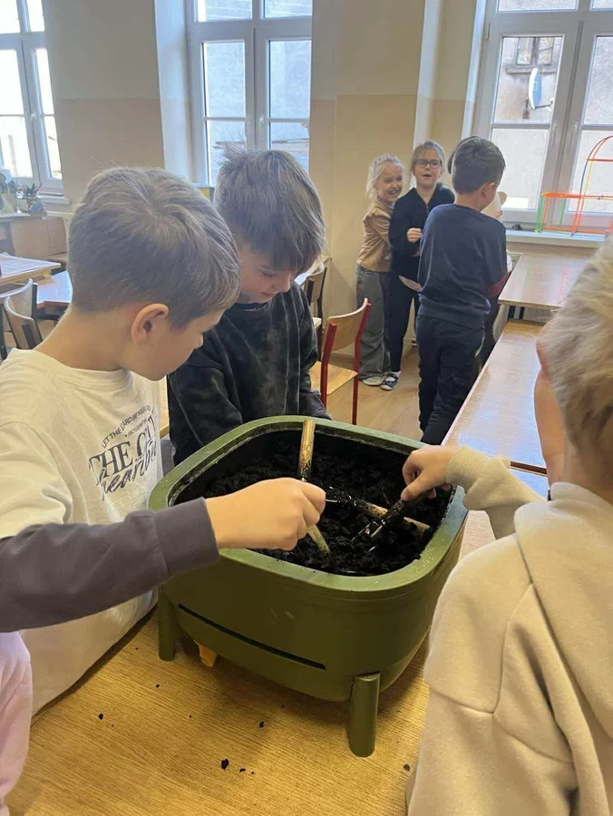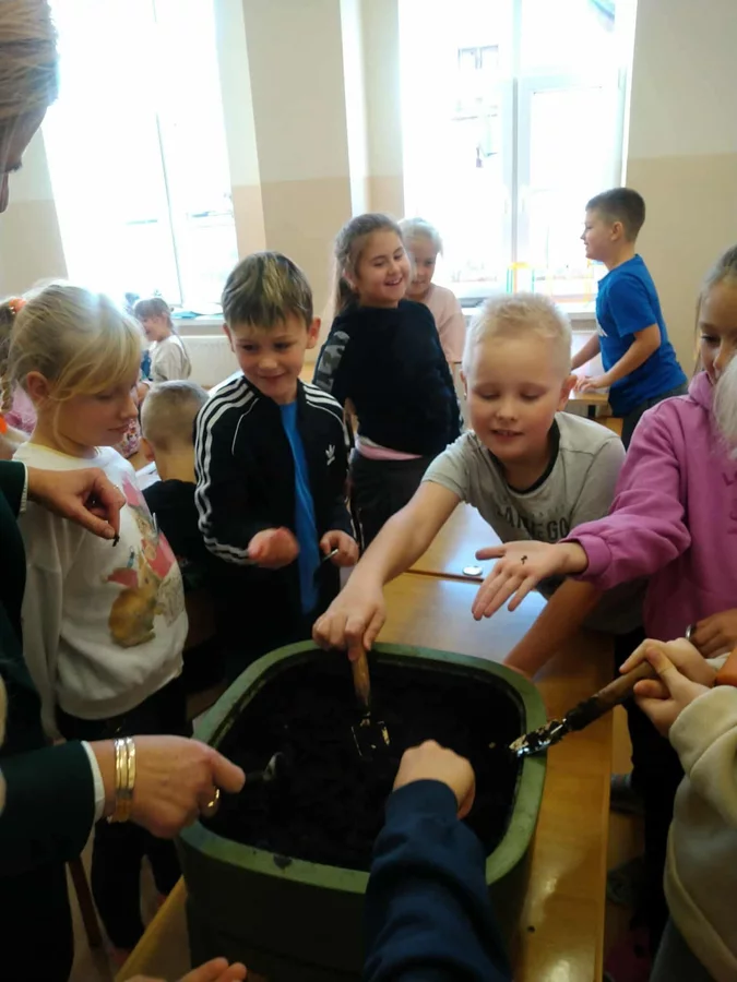 Podczas warsztatów uczniowie dowiedzieli się czym jest kompost, jakie odpady nadają się do kompostowania, a jakich należy unikać, oraz jakie warunki są niezbędne, aby proces przebiegał prawidłowo. Dzieci zobaczyły mały kompostownik, z którego mogły wydobyć dżdżownice, samodzielnie zasadziły kwiatek w doniczce oraz wspólnie rozwiązali tematyczną krzyżówkę.