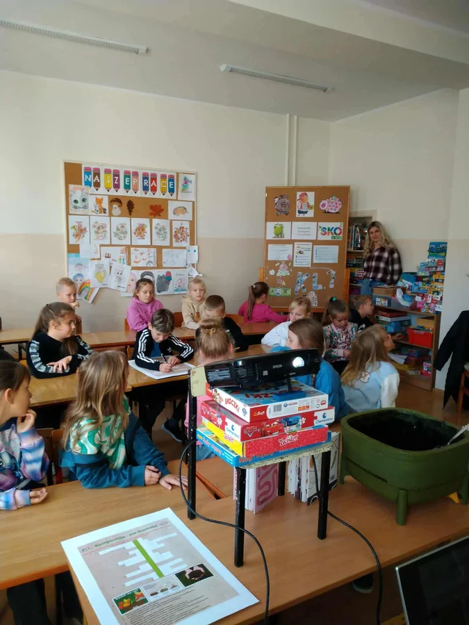 W dniu 20 października uczniowie klas I-III wzięli udział w warsztatach proekologicznych „Kompostuję - nie marnuję”, które poprowadziła p. Justyna Piwońska z firmy „Ekosfera” w Lesznie. Celem warsztatów było podniesienie świadomości uczniów na temat znaczenia kompostowania w codziennym życiu oraz ograniczenia ilości odpadów trafiających na wysypiska.