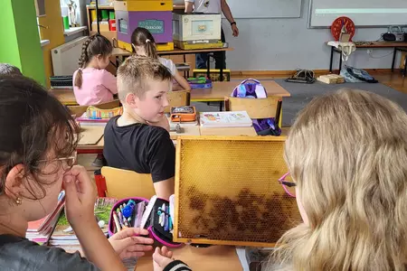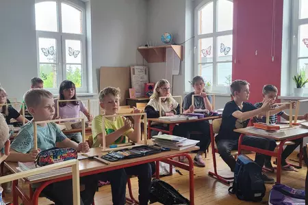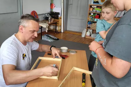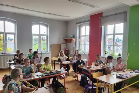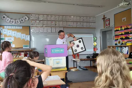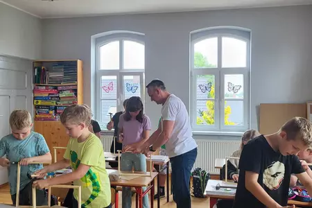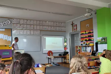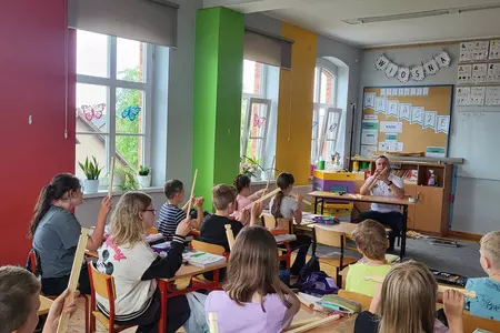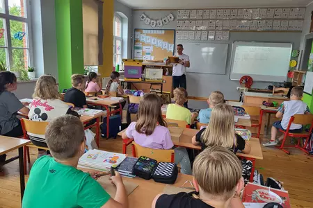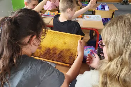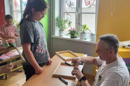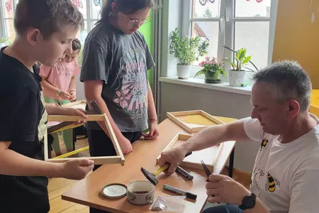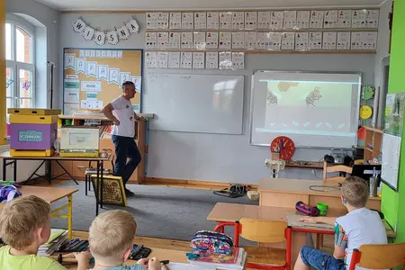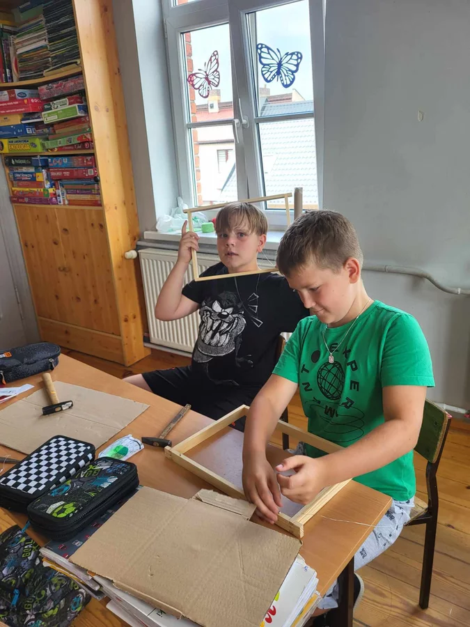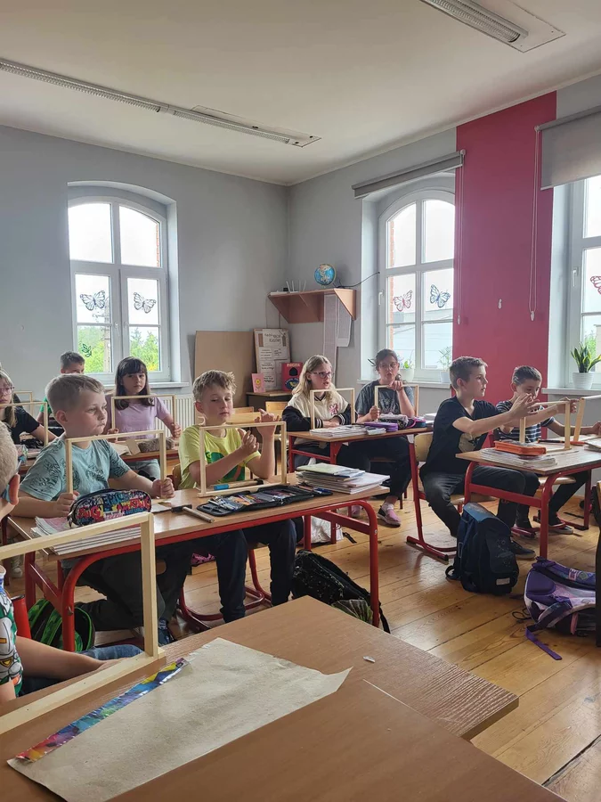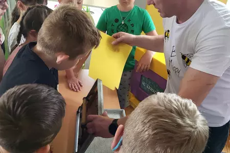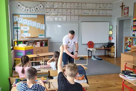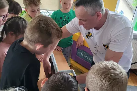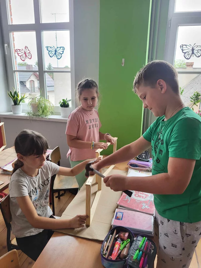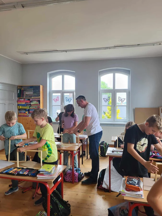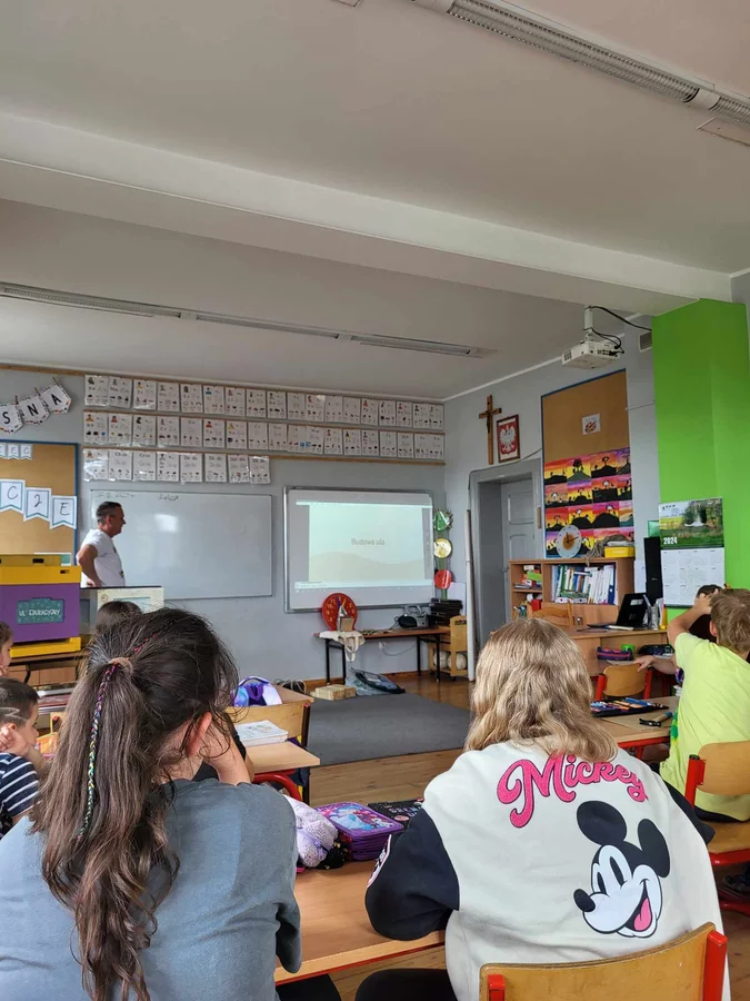 7 czerwca 2024 roku uczniowie klasy 3 w ramach programu Akademia Pszczoły Bohatera uczestniczyli w zajęciach dotyczących życia pszczół. Lekcję poprowadził Pan dyrektor Daniel Piasecki. Dzieci obejrzały dwa filmy edukacyjne: Życie pszczoły oraz Budowa ula. Dowiedziały się co to są i jak są zbudowane ramki, węzy, poznali hierarchię jaka panuje w ulu. Następnie uczniowie mieli zadanie do wykonania. Musieli zbić ramkę. Po wbiciu gwoździ w ramkę, nawinęli drucik. Dyrektor zgrzał pod prądem węzę z naciągniętym drucikiem. Otrzymano w ten sposób gotową ramkę, która będzie miała zastosowanie w ulu. Dzięki temu robotnice będą miały pracę w ulu. Na zakończenie dyrektor pokazał dzieciom strój i przyrządy potrzebne do pracy pszczelarza. Dzieci miały też możliwość przymierzenia takiego stroju. Była to bardzo ciekawa lekcja.