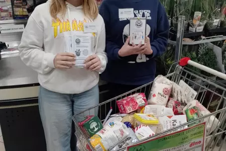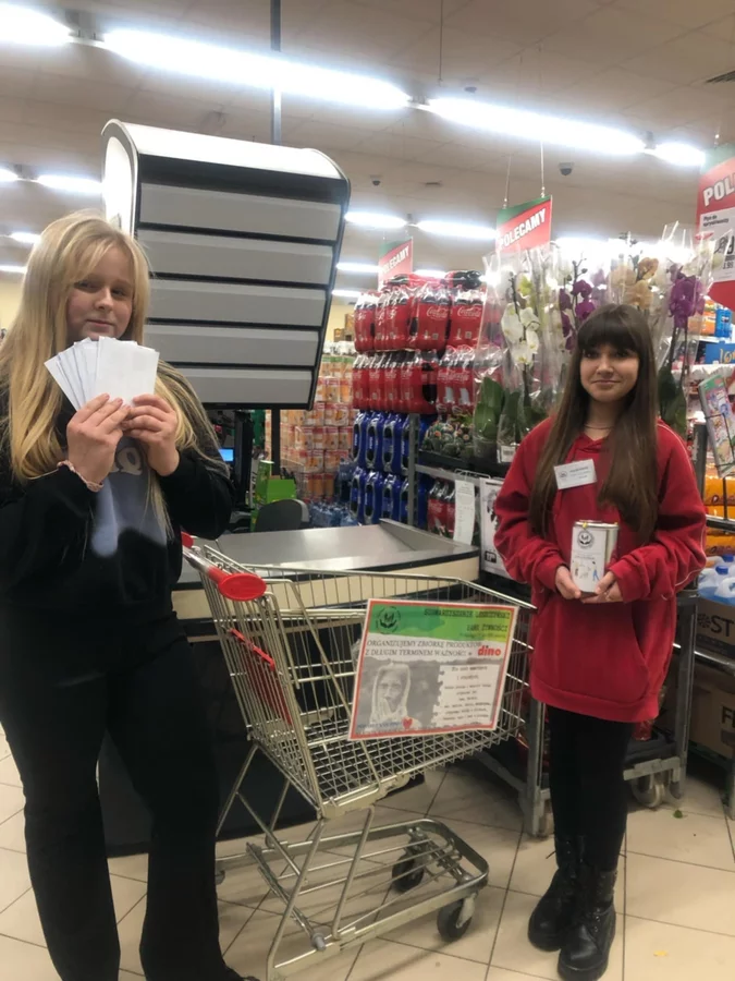 Bank Żywności Wolontariusze z naszej szkoły podczas świątecznej zbiórki w Dino dla Banku Żywności. < powrót
