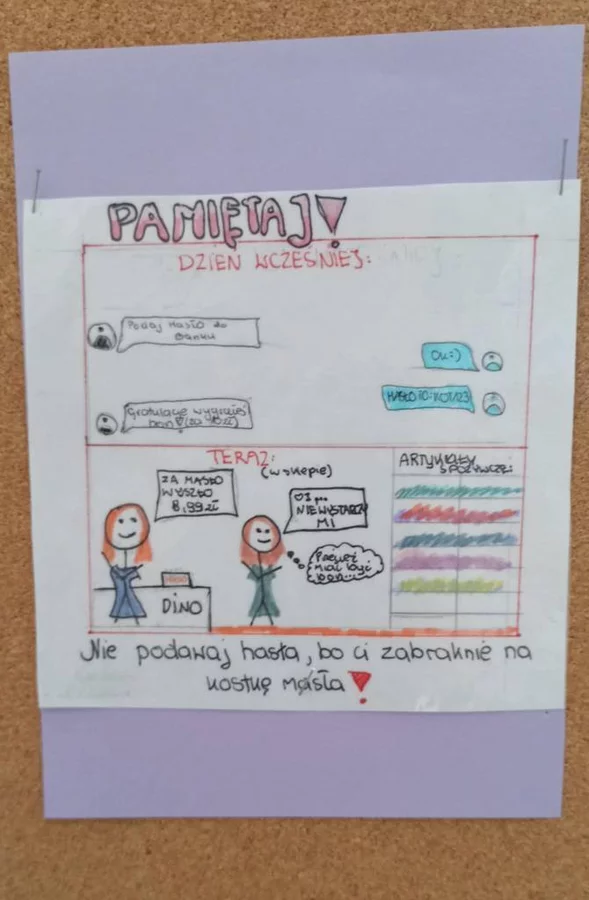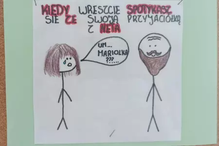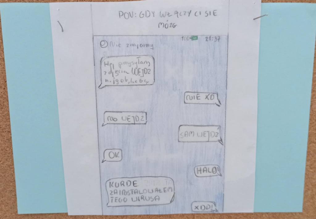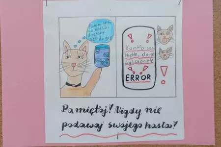 Ponadto uczniowie wzięli udział w konkursie na mem internetowy. Zadaniem uczestników było stworzenie mem'a graficznego, który w zabawny i kreatywny sposób przedstawia zasady bezpiecznego lub pożytecznego korzystania z Internetu. Spośród wszystkich prac wybraliśmy kilkanaście perełek, które można podziwiać na szkolnym korytarzu. Następnie drogą głosowania wyłonimy trzy grafiki, które zostaną nagrodzone. A Wy macie już swoje typy?