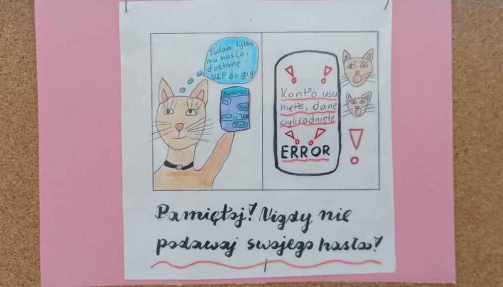 Z okazji Dnia Bezpiecznego Internetu w naszej szkole odbył się cykl zajęć i warsztatów poświęcony tematyce cyberbezpieczeństwa. Na szkolnym korytarzu zawisła gazetka przedstawiająca najważniejsze cyber zasady. Chcemy, by dzieci były świadome oraz wykorzystywały swoją wiedzę odnośnie bezpiecznego poruszania się w świecie wirtualnym.
