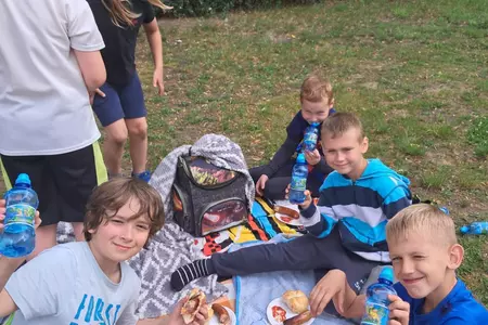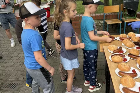 Dzięki pani Paulinie i pani Monice na uczniów czekały pyszne kiełbaski z grilla, które smakowały wyśmienicie.