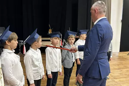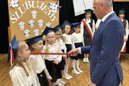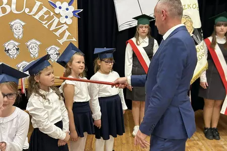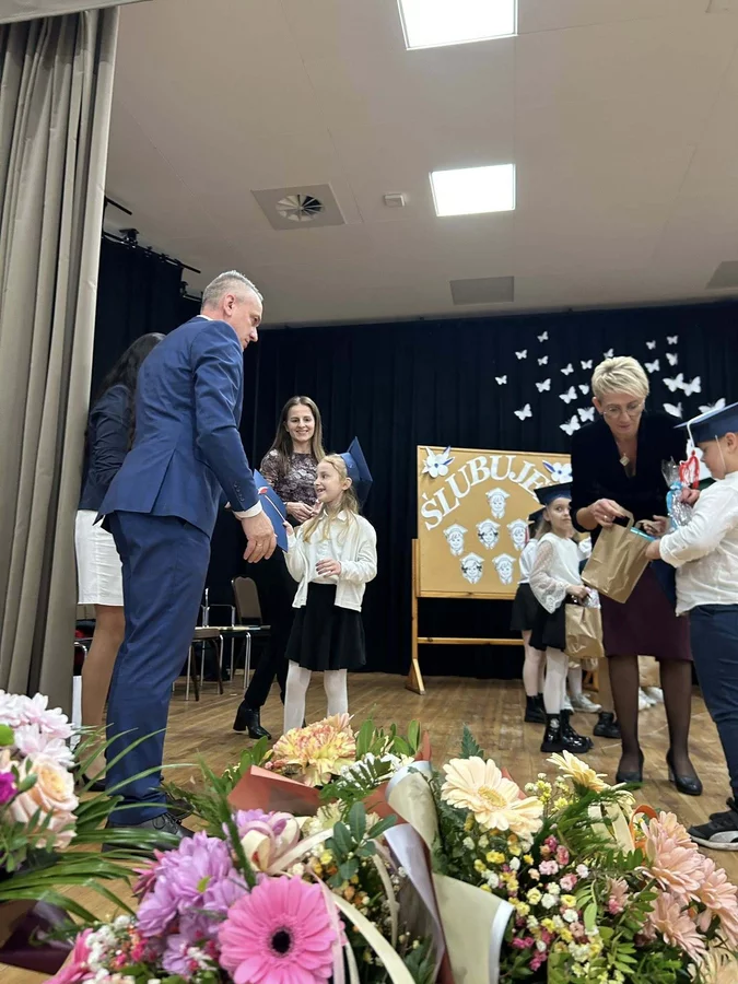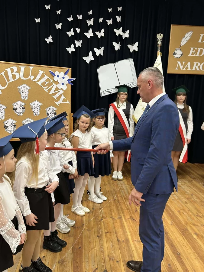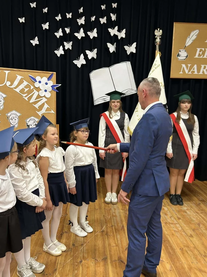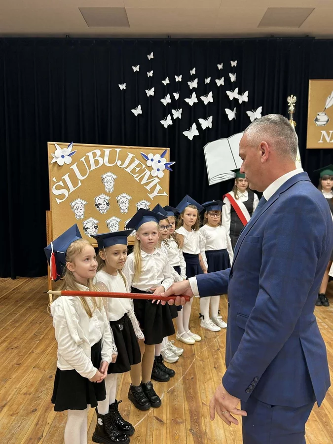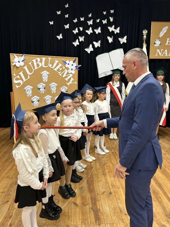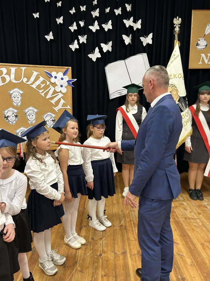 Po odśpiewaniu hymnu państwowego głos zabrali najmłodsi uczniowie. Pierwszoklasiści, ubrani galowo, zaprezentowali przygotowany program, pokazując, że są gotowi do rozpoczęcia swojej szkolnej przygody i złożyli uroczyste ślubowanie na sztandar szkoły. Następnie pan dyrektor Daniel Piasecki symbolicznym ołówkiem pasował każde dziecko na ucznia Szkoły Podstawowej w Bukówcu Górnym.