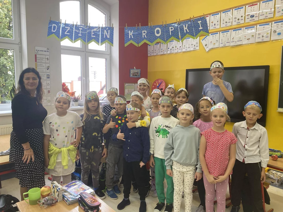 W poniedziałek 16.09.2024r. uczniowie klas I-III świętowali Międzynarodowy Dzień Kropki. Tego dnia poznali historię Vashti, dziewczynki która dzięki swojej nauczycielce odkryła w sobie moc kreatywność. Uczniowie w tym dniu rozmawiali o swoich talentach i odwadze potrzebnej do pobudzania ukrytych zdolności. Wykonali różnorodne i przepiękne prace plastyczne inspirowane tym dniem, a chętni tego dnia przyszli ubrani w kropkowane ubrania. Był to bardzo emocjonujący i ciekawy dzień.
