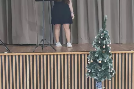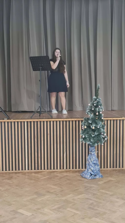 Swoim śpiewem występ uświetniła również uczennica kl. VIII Marta Jakubowska. Na widowni zasiadła cała społeczność szkoły wraz z rodzicami, dziadkami oraz emerytowanymi pracownikami.