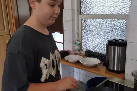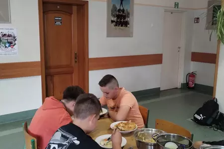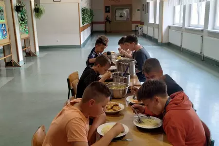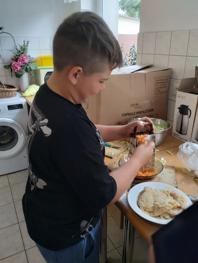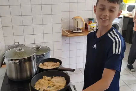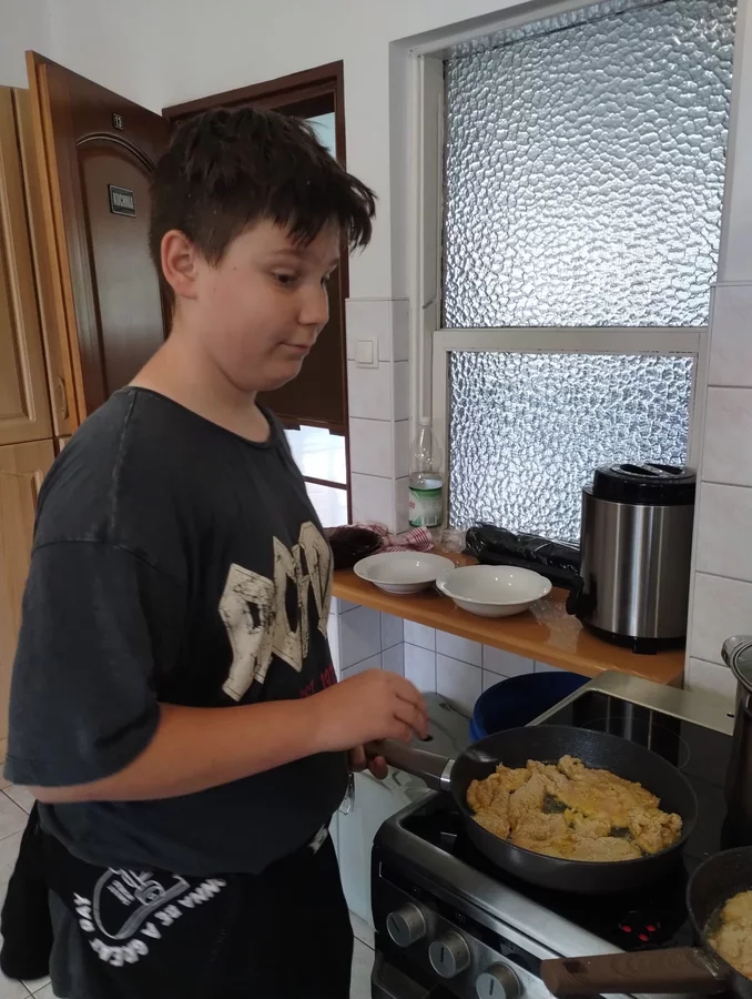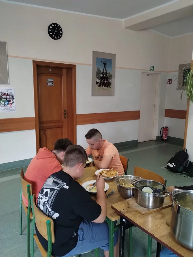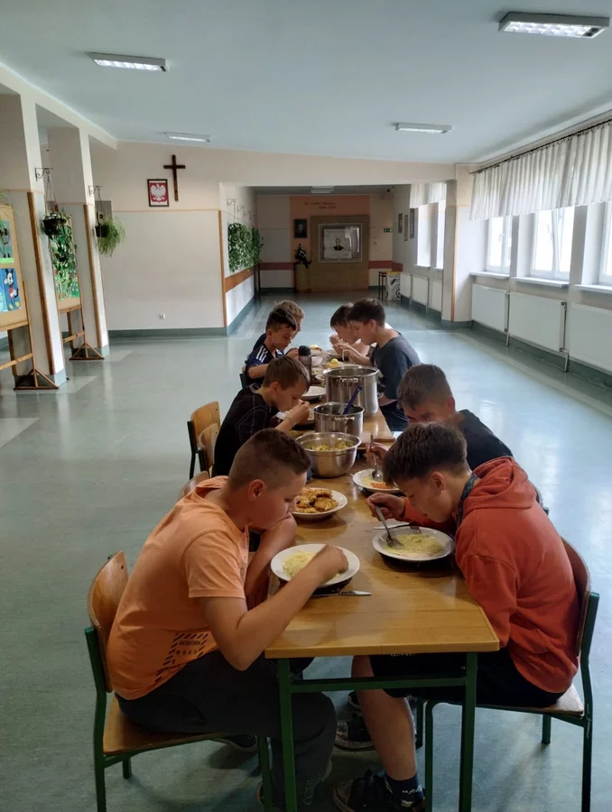 Na ostatnich zajęciach chłopcy z klasy V przygotowali obiad dwudaniowy .Był rosół, ziemniaki, surówka i kotlety.