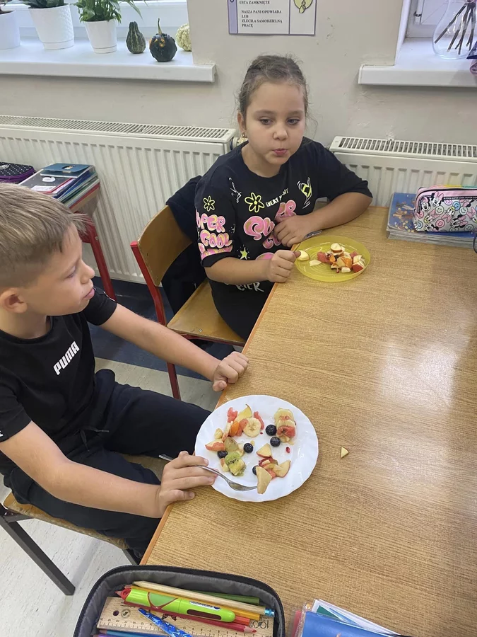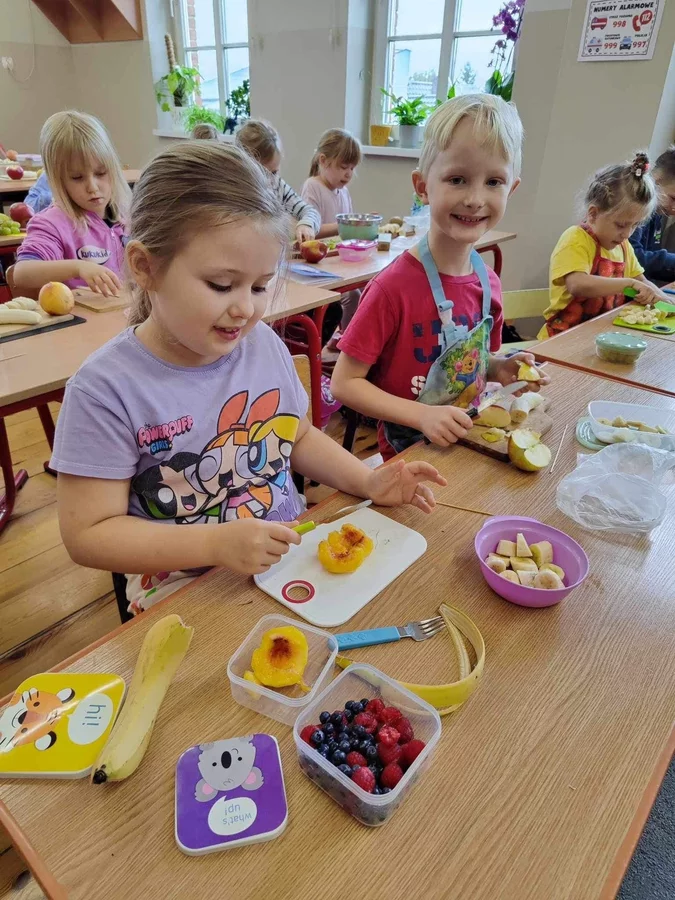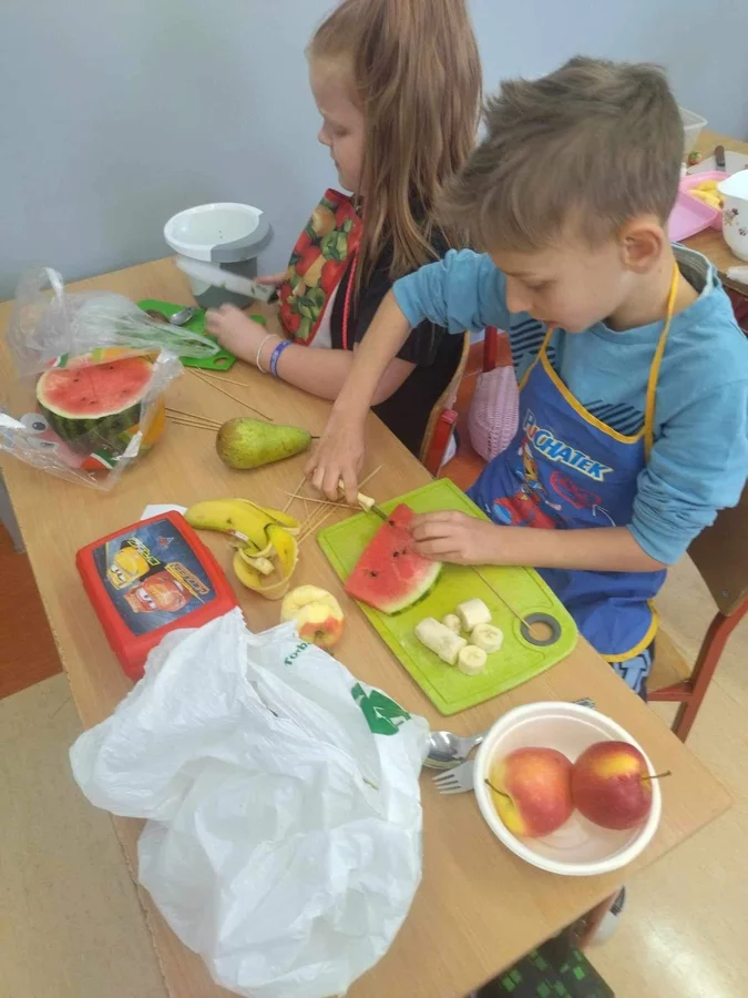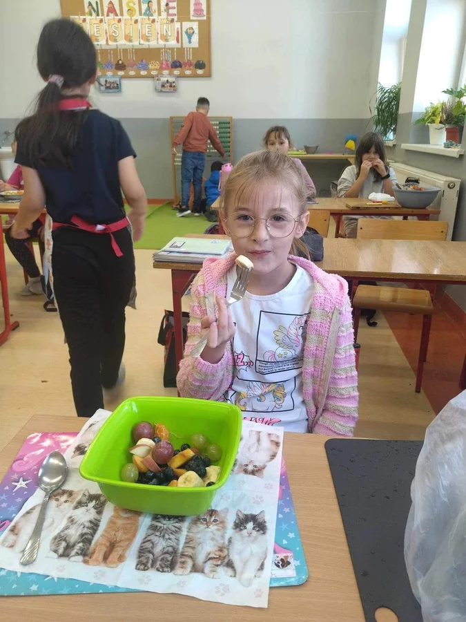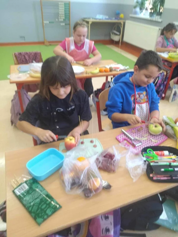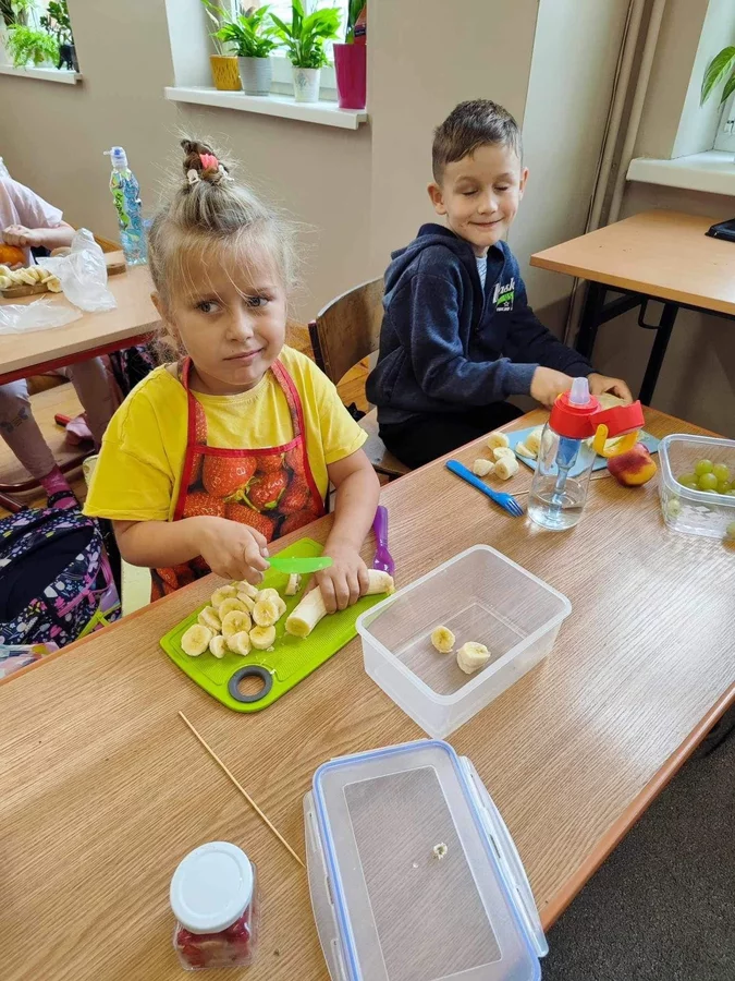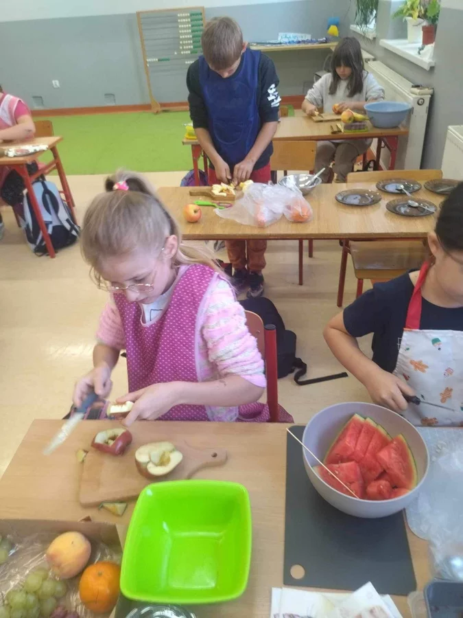 Przez cały tydzień dzieci z klas I-III poszerzały swoją wiedzę dotyczącą warzyw i owoców. Uczniowie doskonale poradzili sobie z przygotowaniem owocowych sałatek i szaszłyków. Było smacznie, zdrowo i kolorowo. To były zajęcia pełne smaku, zapachu i doznań sensorycznych.