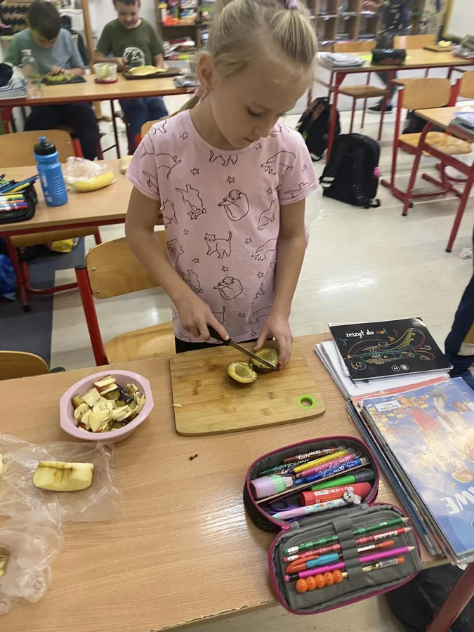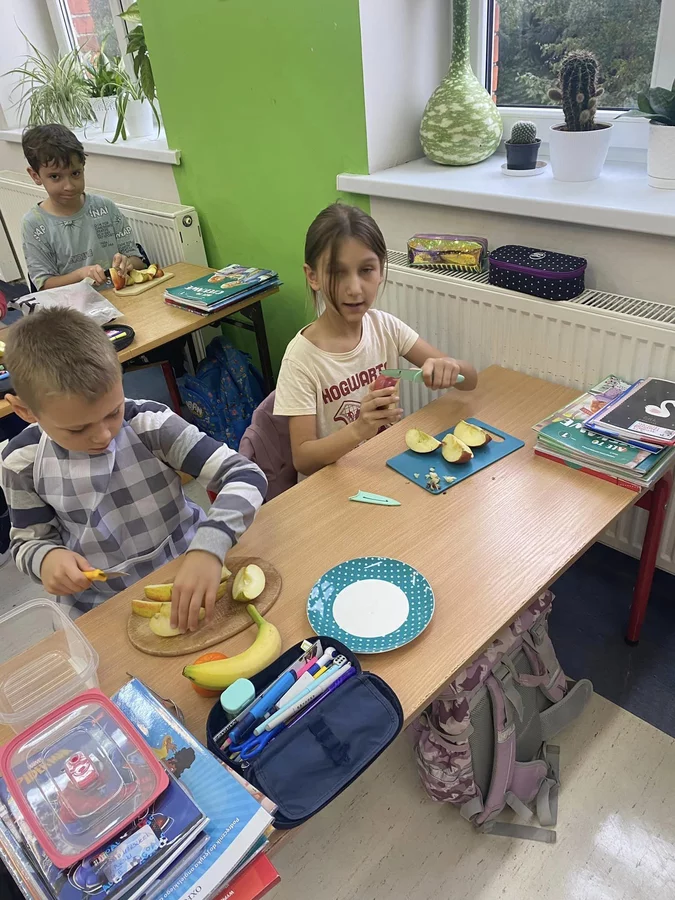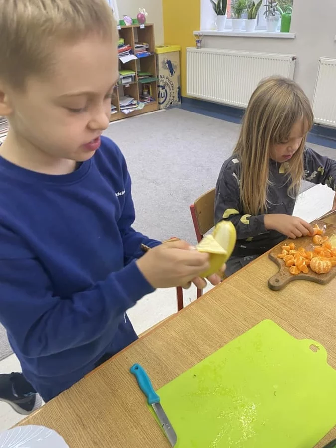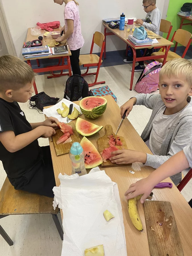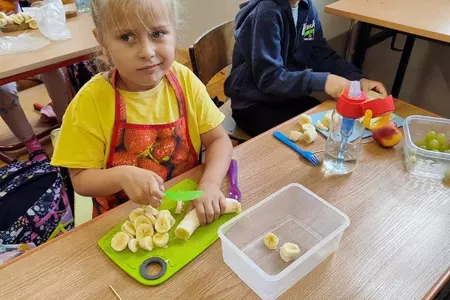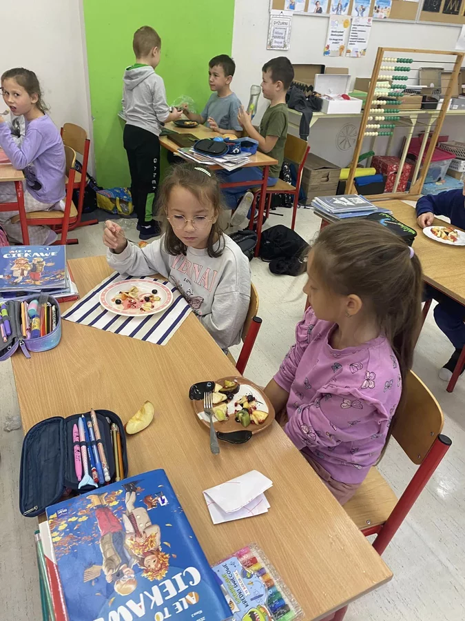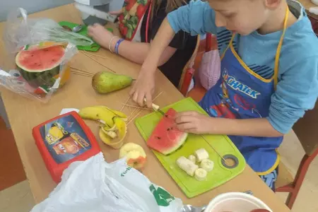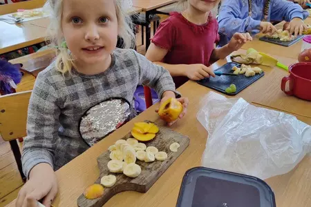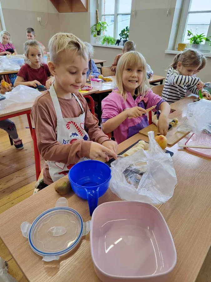 Przez cały tydzień dzieci z klas I-III poszerzały swoją wiedzę dotyczącą warzyw i owoców. Uczniowie doskonale poradzili sobie z przygotowaniem owocowych sałatek i szaszłyków. Było smacznie, zdrowo i kolorowo. To były zajęcia pełne smaku, zapachu i doznań sensorycznych.