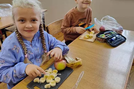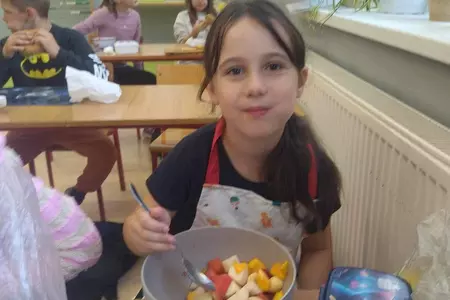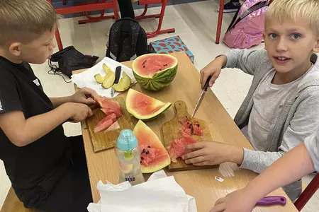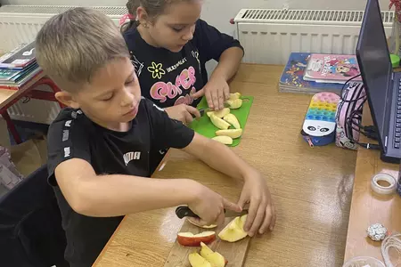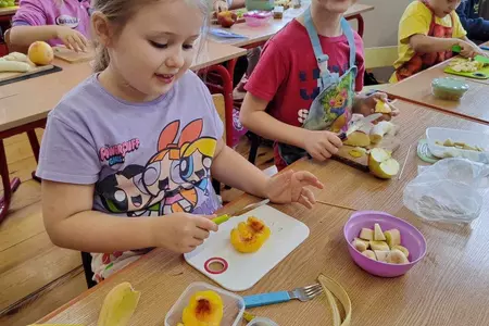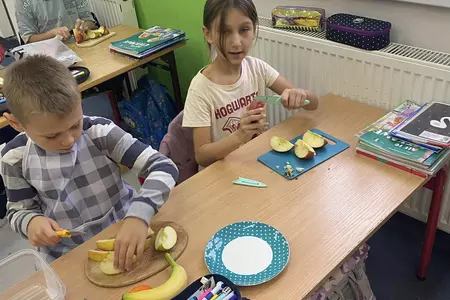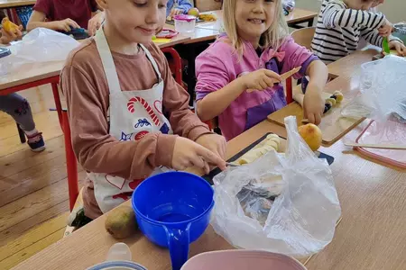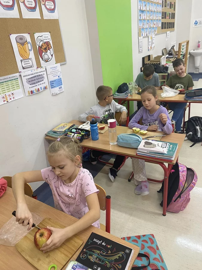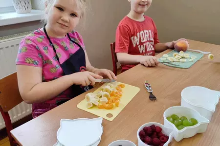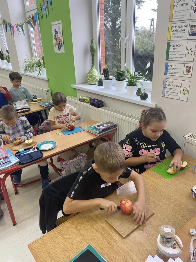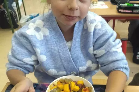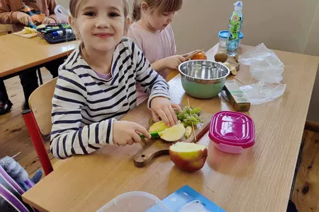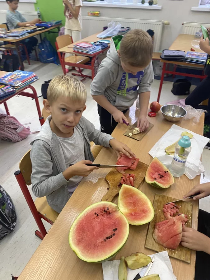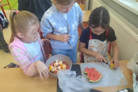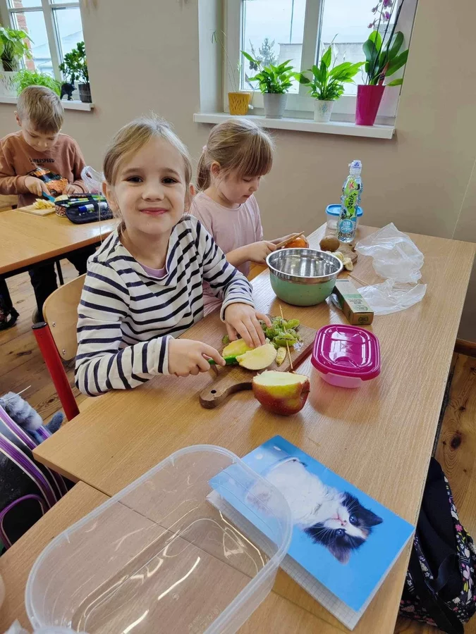 Przez cały tydzień dzieci z klas I-III poszerzały swoją wiedzę dotyczącą warzyw i owoców. Uczniowie doskonale poradzili sobie z przygotowaniem owocowych sałatek i szaszłyków. Było smacznie, zdrowo i kolorowo. To były zajęcia pełne smaku, zapachu i doznań sensorycznych.