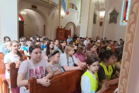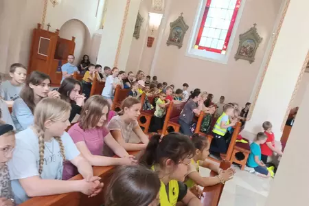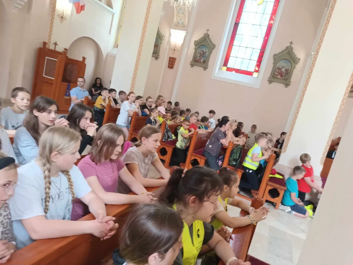 24 maja w ramach rekolekcji cała szkoła udała się na pieszą pielgrzymkę do Sanktuarium Maryjnego w Charbielinie. Na miejscu uczestniczyliśmy we Mszy Świętej, po której mamy z Rady Rodziców przygotowały słodki poczęstunek. Posiłek i działanie Ducha Świętego na tyle wzmocniły młodych pielgrzymów, że zamiast czekać na autobus wyruszyli pieszo w drogę powrotną do Bukówca.