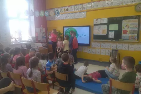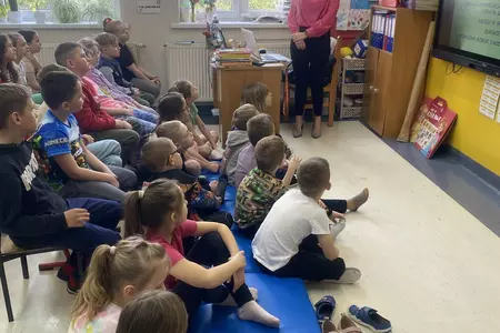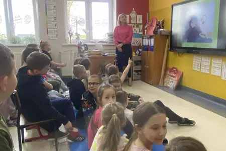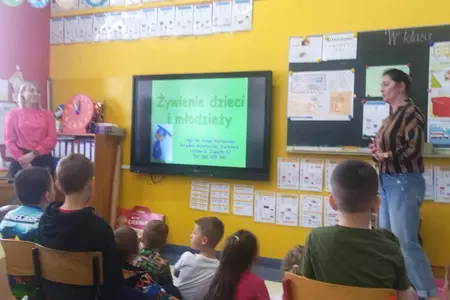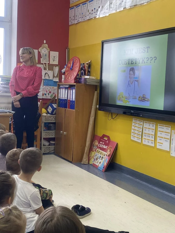 W poniedziałkowy poranek uczniów klas I-III odwiedził niecodzienny gość. Była to dietetyk, pani Kinga Markowska. W ciekawy sposób przedstawiła informacje dotyczące prawidłowego odżywiania się i jego wpływu na naukę i codzienne funkcjonowanie. Dzieci uważnie słuchały i zadawały pytania. Na koniec podziękowały wręczając kwiaty i laurki. To było bardzo ciekawe spotkanie.