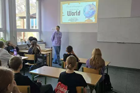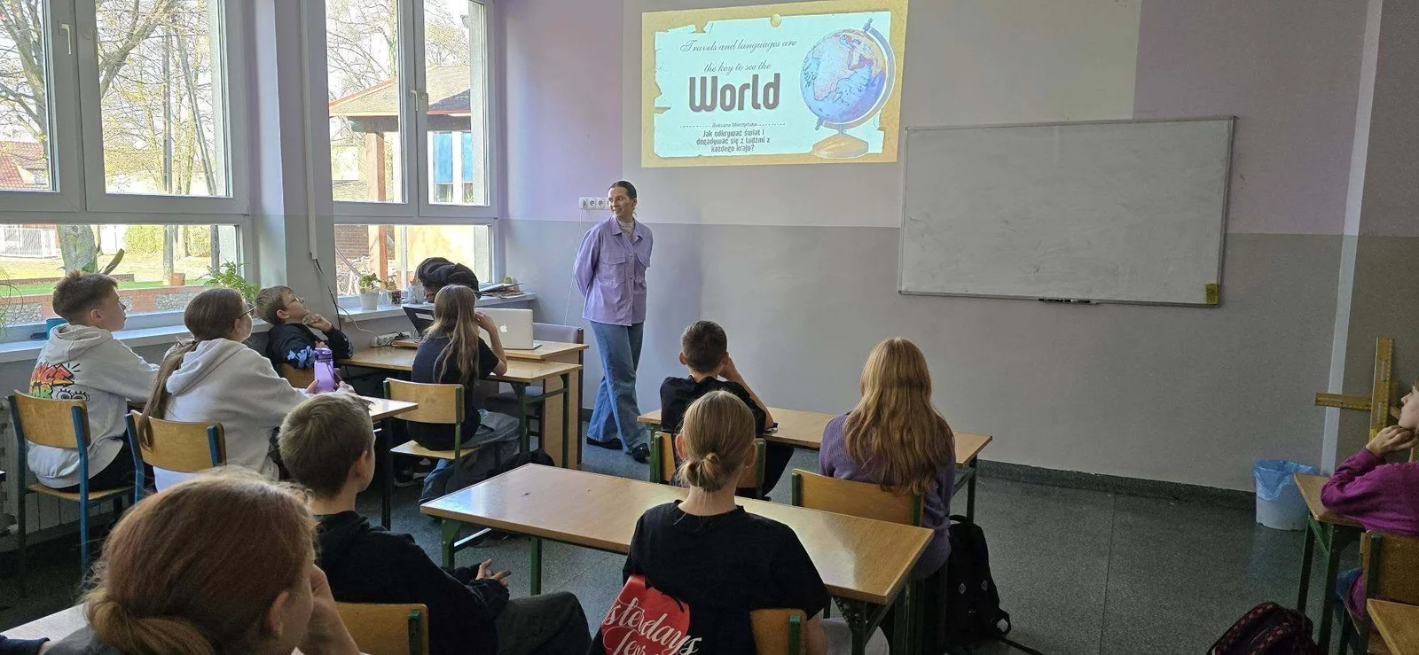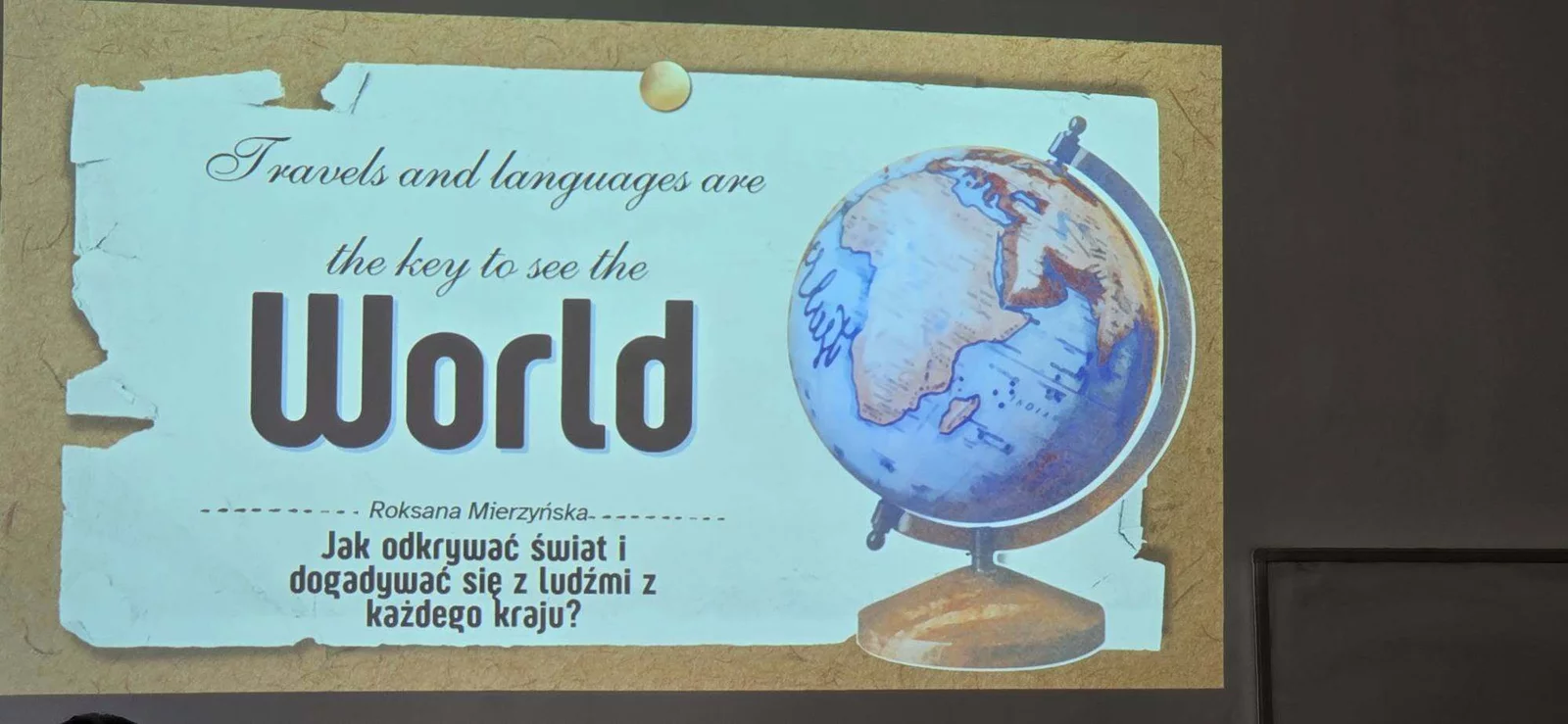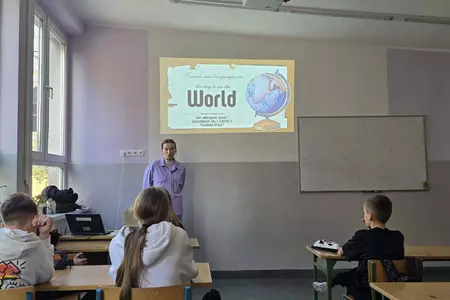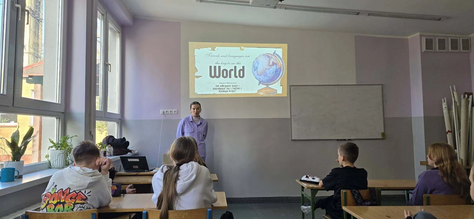Uczniowie klasy VI gościli dziś Roksanę Mierzyńska, siostrę Wiktora, która opowiadając o swoich podróżach po różnych kontynentach przekonywała, że warto uczyć się języków obcych - sama zna ich aż siedem - realizować swoje marzenia i mieć otwarte umysły.