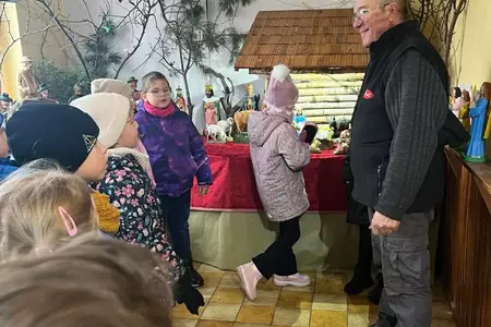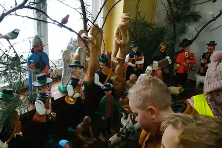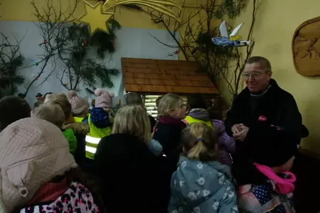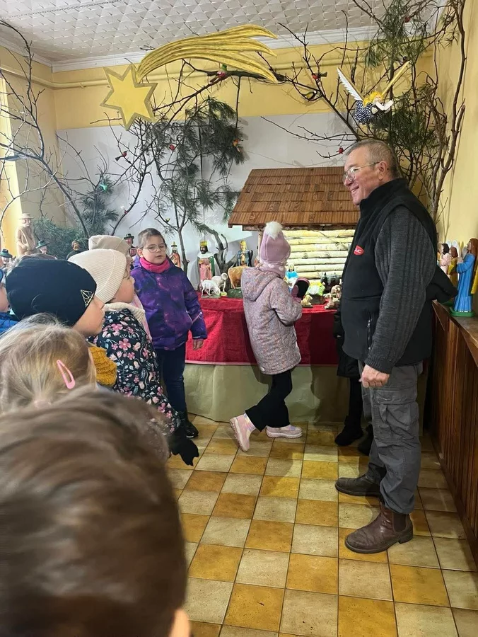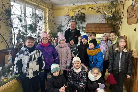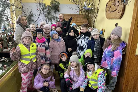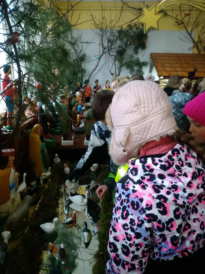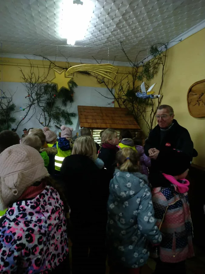 Uczniowie z klas I-III odwiedzili lokalnego rzeźbiarza, pana Sowijaka. Dzieci mogły obejrzeć szopkę bożonarodzeniową, która wiele razy była prezentowana na wystawach. Artysta pokazał również swoje rzeźby, m.in. lokalnych dudziarzy, Mikołaja Kopernika oraz obraz Jana Pawła II. Wyjście było ciekawym spotkaniem z lokalną tradycją i historią.