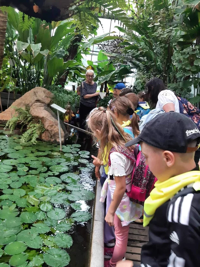 23 maja najmłodsi uczniowie naszej szkoły udali się na wycieczkę klasową. Pierwszoklasiści odwiedzili stolicę Wielkopolski-Poznań. Razem z nimi pojechali rówieśnicy z Krzycka Wielkiego. Pierwszym punktem programu był przejazd starą bimbą, która podjechała po małych podróżników na Pętlę Górczyn. W tramwaju czekała miła pani konduktor i jednocześnie przewodnik, która opowiedziała o zasadach zachowania w tym pojeździe. Rozdała mapki, na które wklejało się mijane podczas jazdy, charakterystyczne obiekty Poznania. Na temat każdego z nich przedstawiła krótką informację, często przebierała uczestników za historyczne osoby związane z Poznaniem. Nauczyła też kilku słów w języku migowym. Uczniowie otrzymali również bilety, które zostały skasowane, a także pamiątkowe magnesy. Przejazd tramwajem dostarczył dzieciom niesamowitych wrażeń. Kolejnym punktem był spacer do Palmiarni. Tam uczestnicy zapoznani zostali z różnorodnością świata roślin w poszczególnych strefach klimatycznych. Mogli na własne oczy zobaczyć egzotyczne rośliny, spróbować wanili, owoców kakaowca czy cukru kokosowego. Wykazali się dociekliwością, zadając pani przewodnik ciekawe pytania, za co zostali pochwaleni. Odwiedzili również akwaria z pięknymi rybami. Na koniec zakupili pamiątki. Ostatnim punktem wycieczki był tradycyjnie posiłek w restauracji McDonald. Wycieczkę zaliczyć można do bardzo udanych, o czym świadczyły zadowolone miny dzieci i ich słowa.